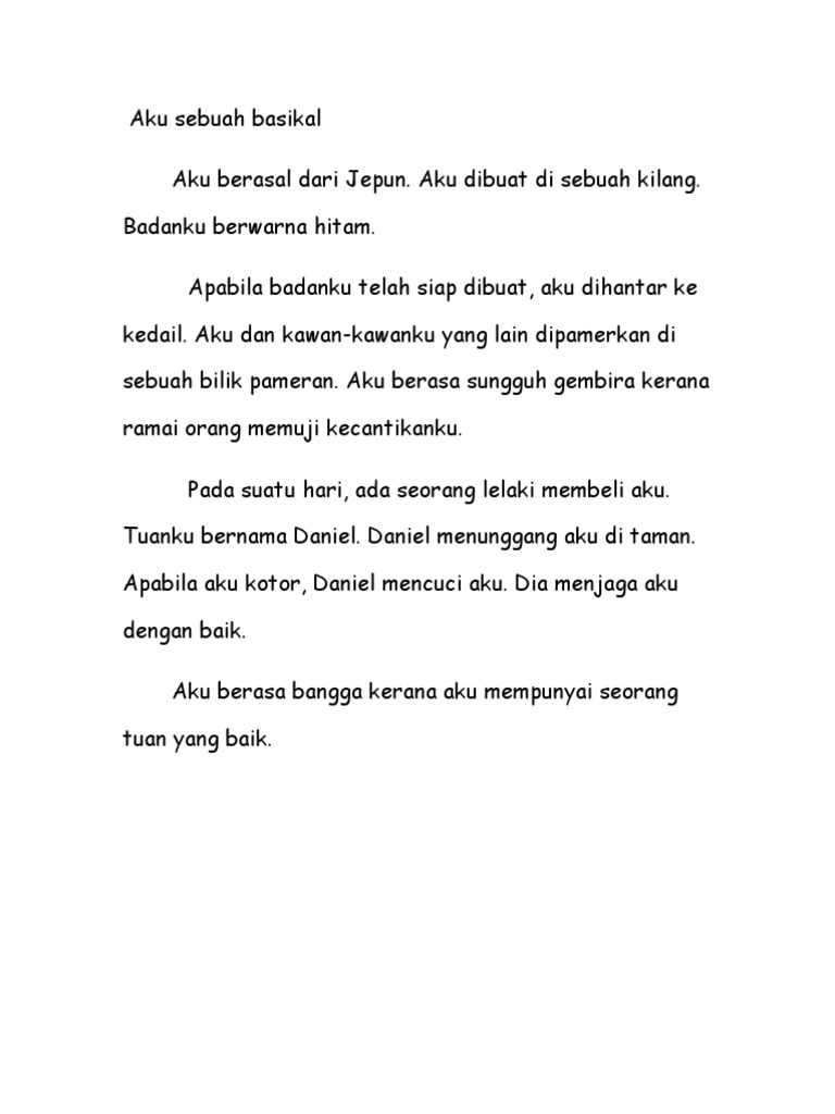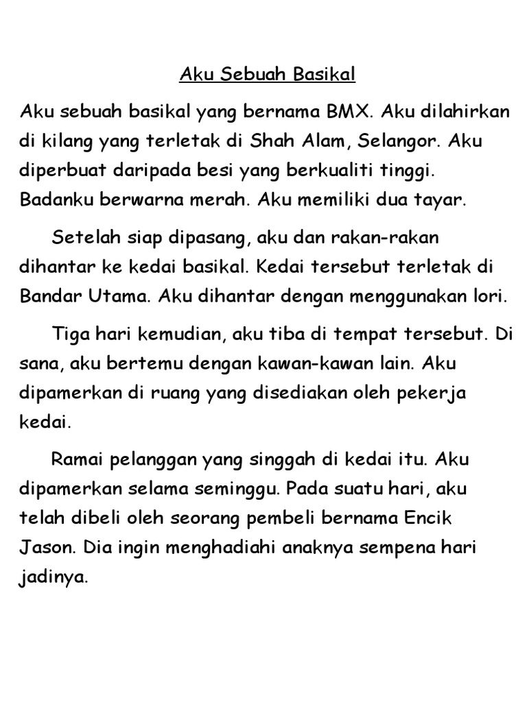 Contoh Karangan Sekolah Rendah Contoh Karangan Bahasa Malaysia Sk Dan Sjkc Tahun 4 5 6 Upsr Aku Sebuah Basikal